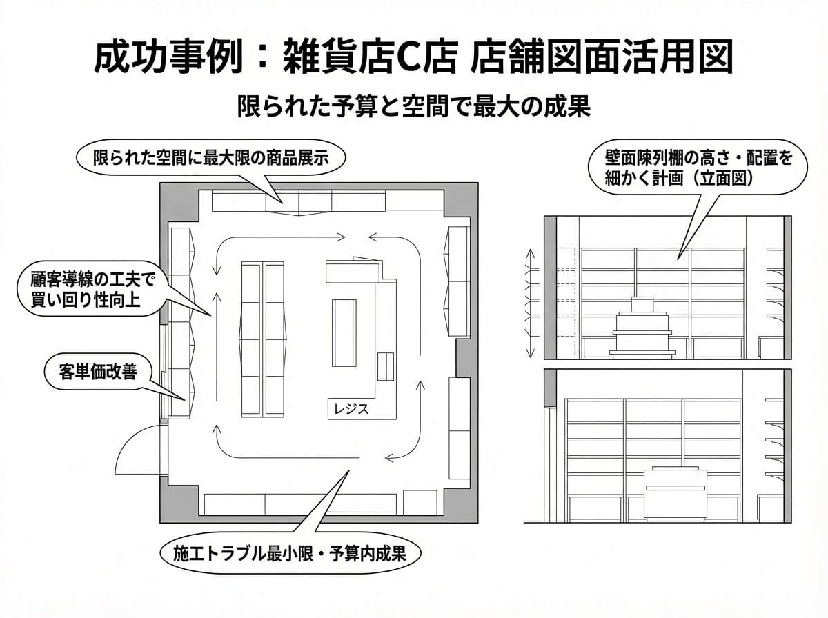 地方の雑貨店C店は、予算が限られる中で店舗図面を戦略的に活用しました。