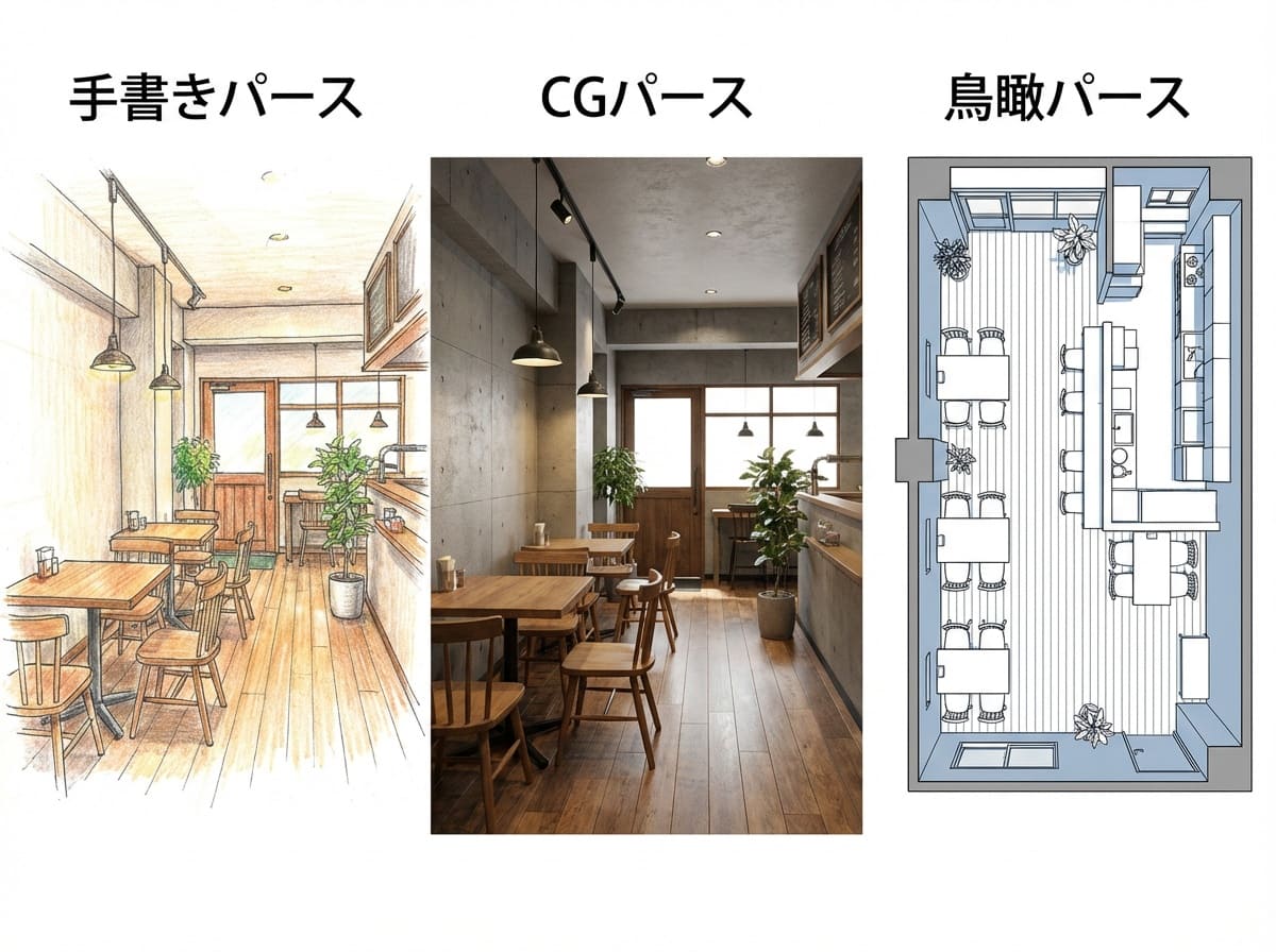 (3) 店舗パースの種類とそれぞれの特徴