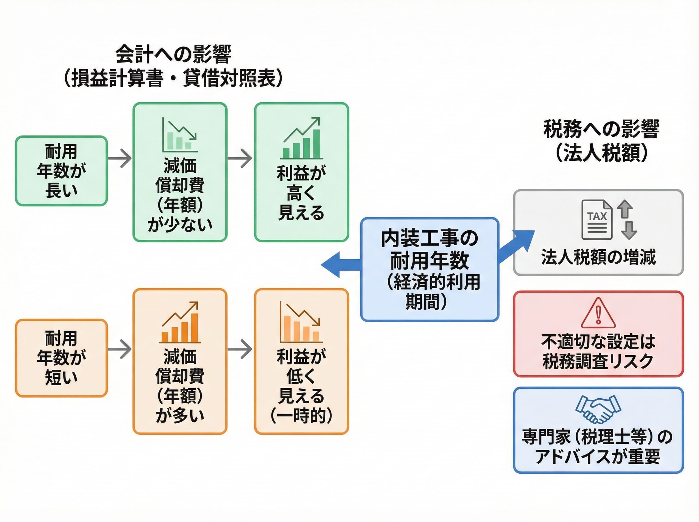 また、税務上は耐用年数が異なると法人税額にも影響が及びます。